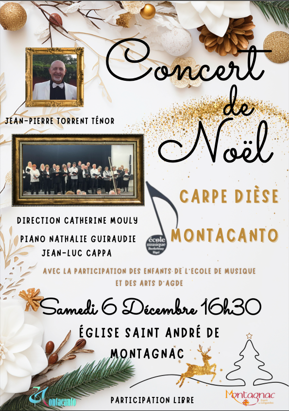 Montagnac, Eglise St André le 6 décembre 2025 à 16h30 et Pézénas le 21 décembre 2025